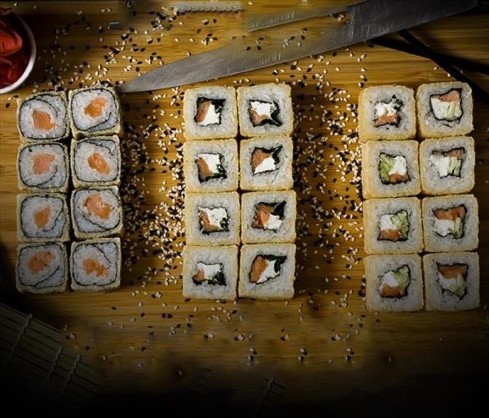 -Лосось темпура - лосось, нори, кляр, панировка, рис;