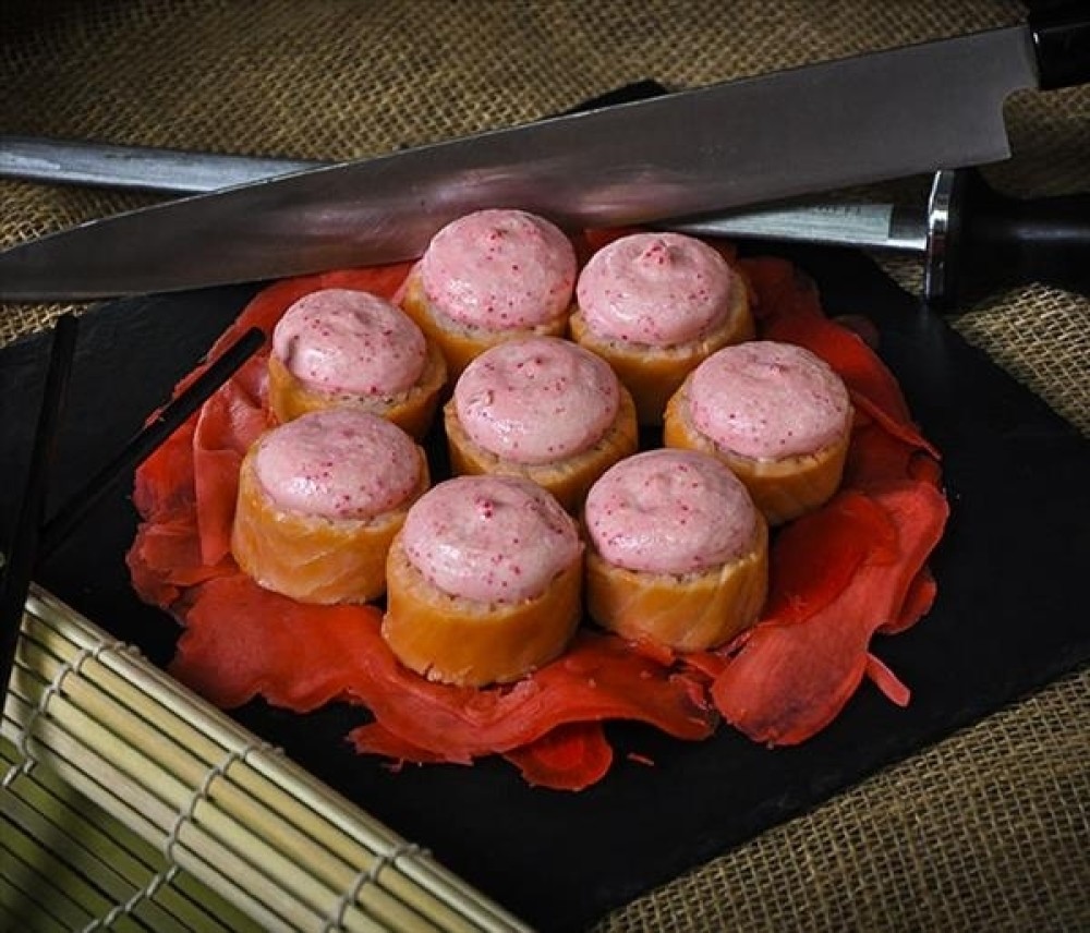 Запеченный ролл со сливочным сыром, нежнейшей сёмгой, и огурецом