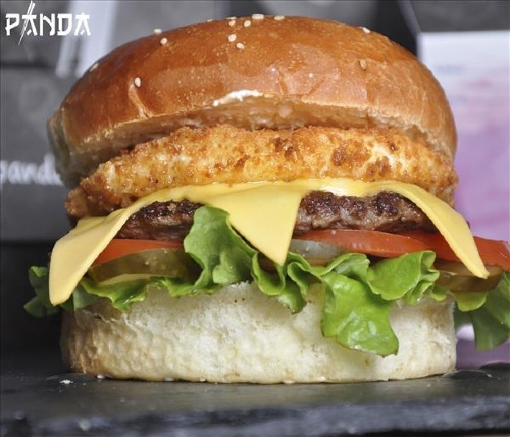Сочная котлета из говядины, маринованные огурчики, свежий томат, пекинская капуста, ломтик сыра Чеддер, фирменный соус, сырная котлета, фирменная булочка