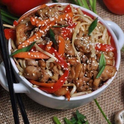 Вок с курицей и лапшой удон