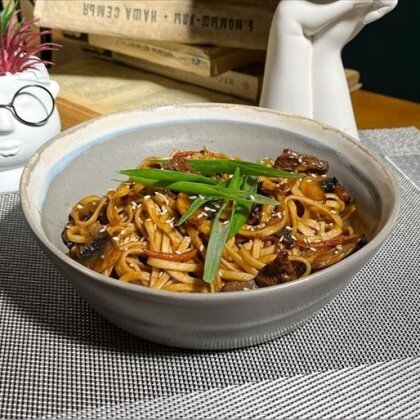 Вок с говядиной и лапшой Удон соусом Блек Пеппер