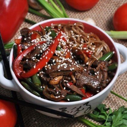 Вок с говядиной и лапшой Соба