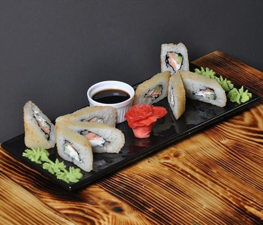Сливочный сыр, лосось, огурец, кляр, панировочные сухари