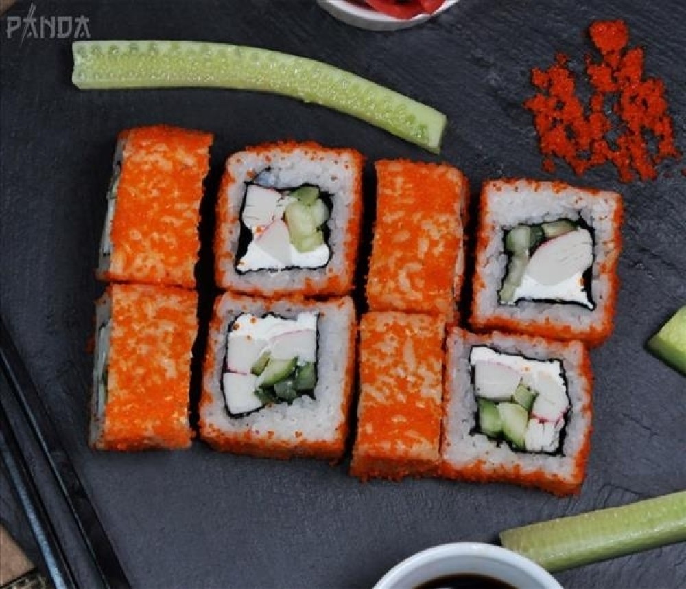 Сливочный сыр, крабовый микс, огурец, икра тобико