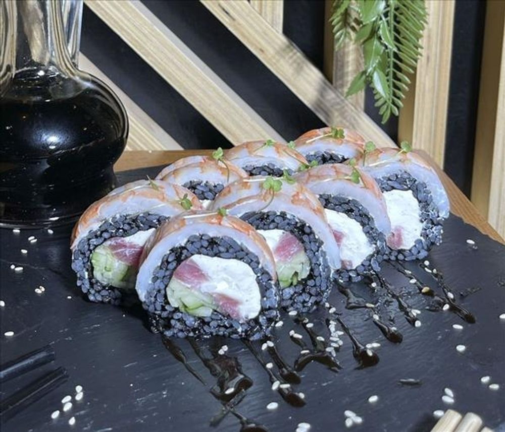Сыр творожный,тунец, огурец, креветки, микро зелень