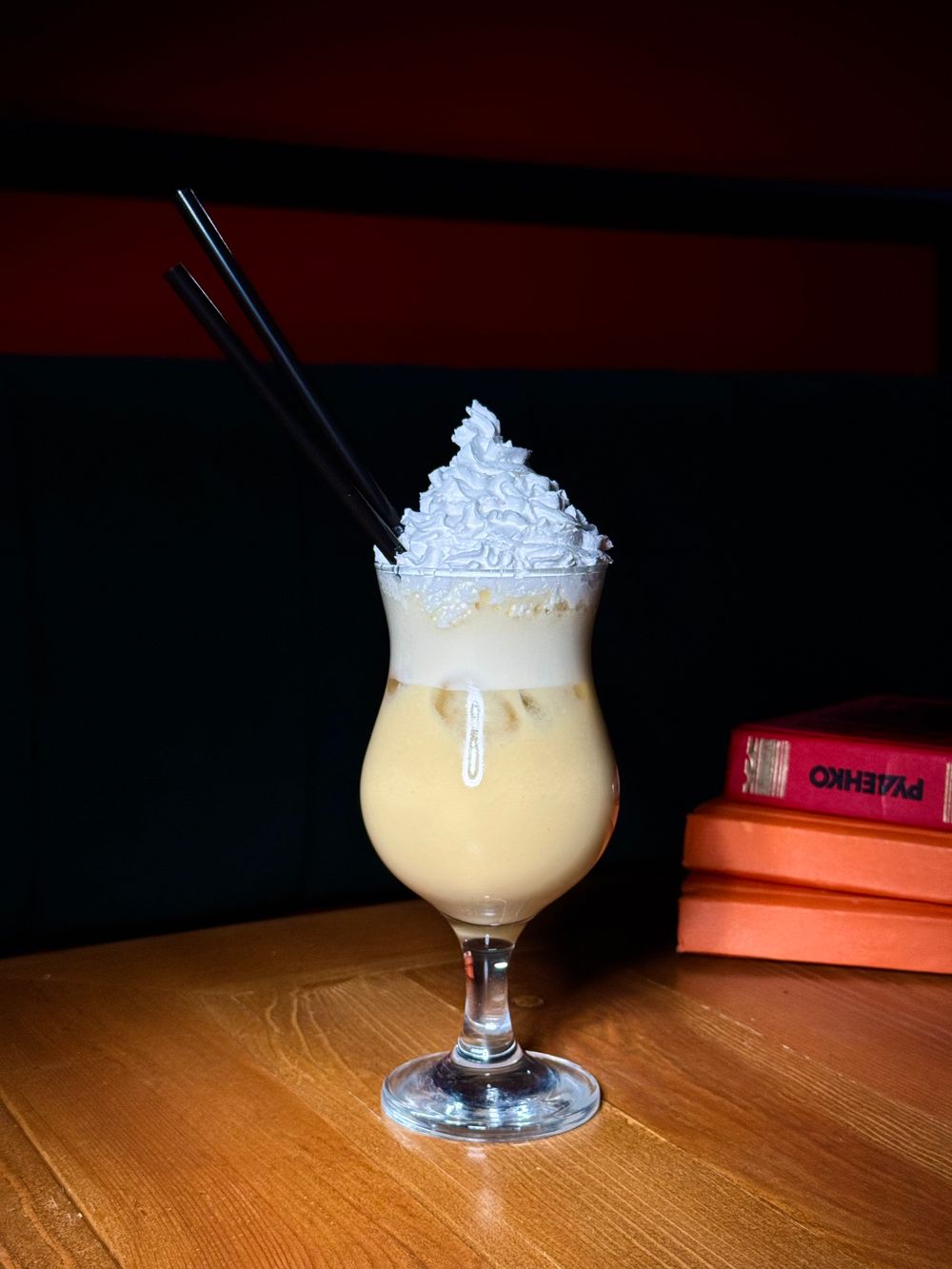 Пико персик, пико ананас, сироп кокос, сливки, взбитые сливки
