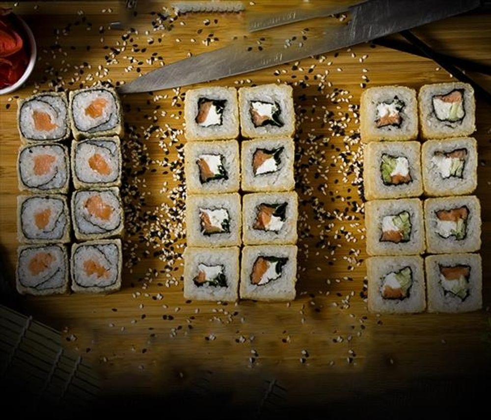 -Самурай темпура - творожный сыр, нори, лосось, огурец, кляр, панировка, рис