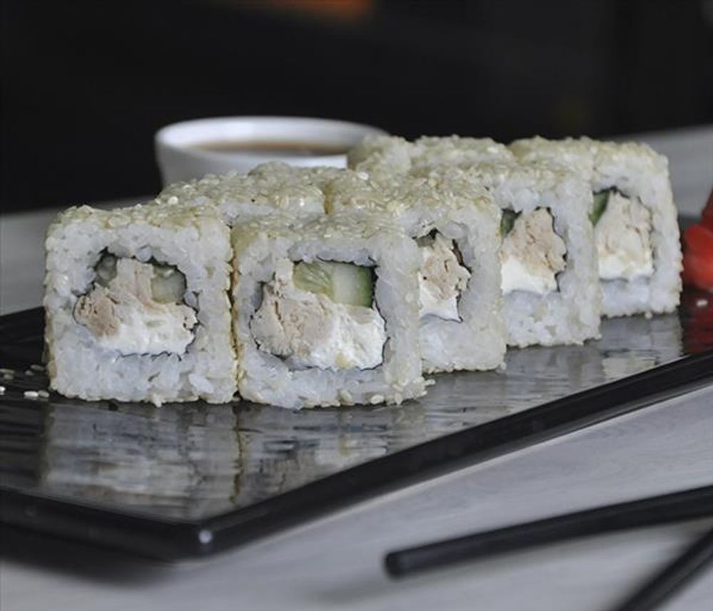 Сливочный сыр, огурец, копченая грудка, кунжут
