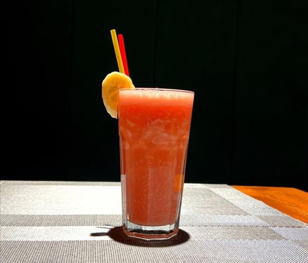 Пико персик, банан, сироп клубника, сироп лимонный, сироп гренадин