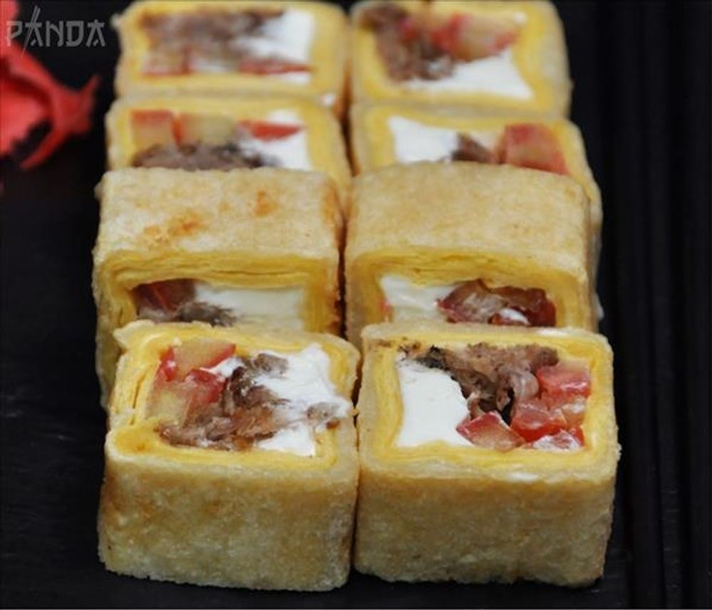Мексиканская сырная лепешка, сыр творожный, помидор, отварная рваная говядина, кляр, панировка