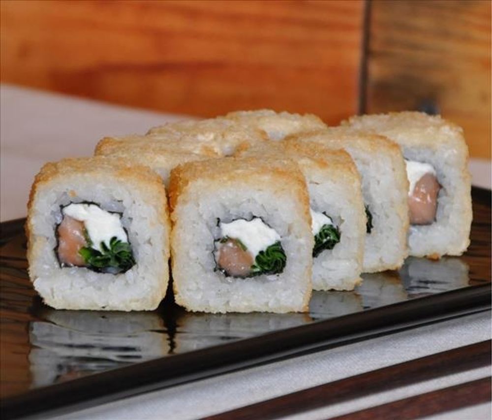 Сёмга, зеленый лук, сливочный сыр, кляр, панировочные сухари
