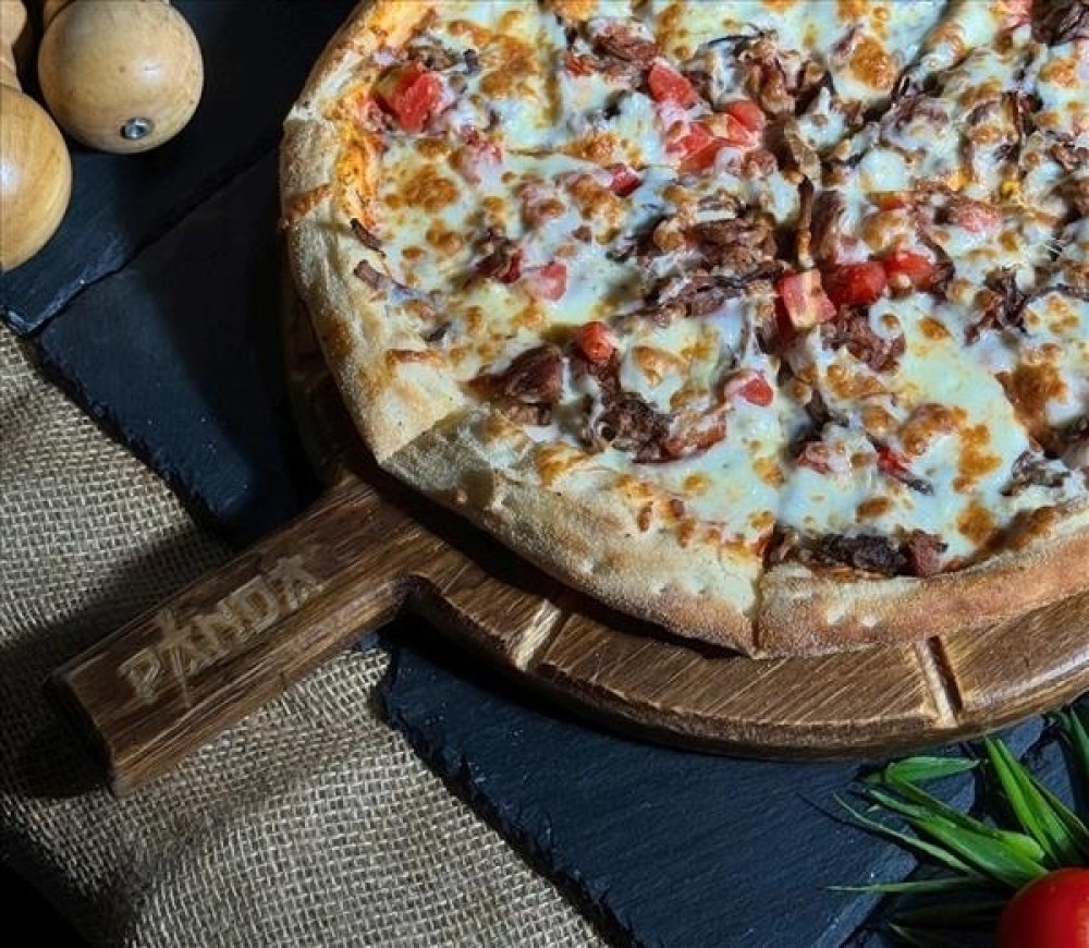 Фирменное тесто, вкуснейшая моцарелла, красный соус, спайси соус, помидор, рваная говядина, говяжий фарш, говяжье сосиски