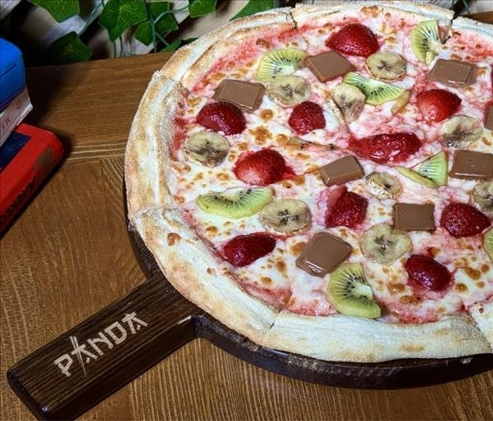 Банан, киви, клубника, молочный шоколад, сыр моцарелла и шоколадный топпинг